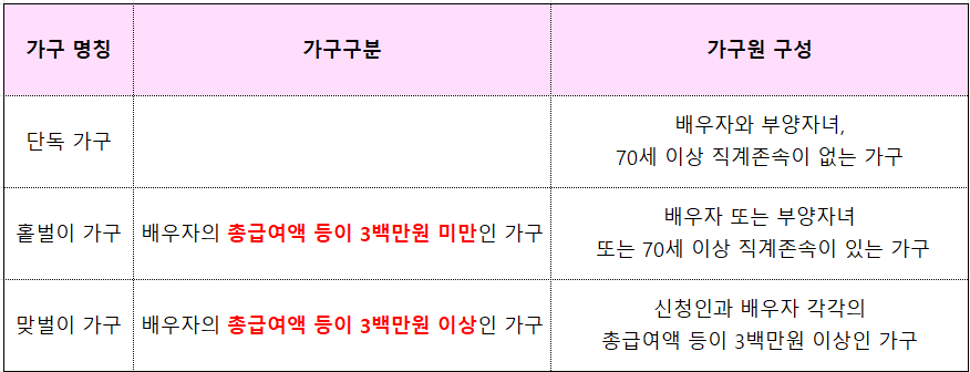 - 주민등록등본 상 동거가족으로 생계를 함께 할 것