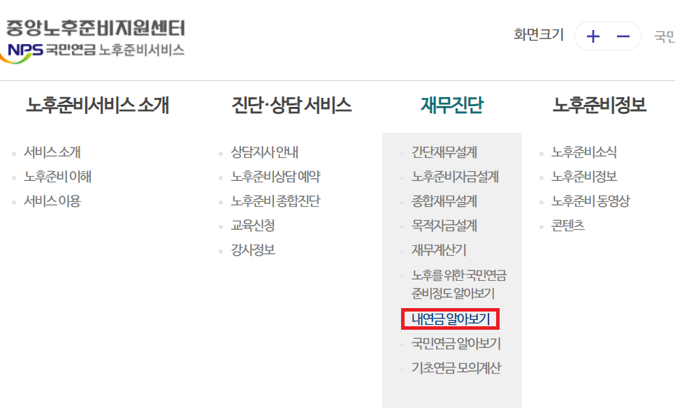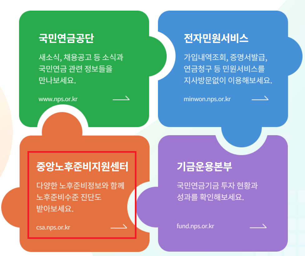 ① 국민연금공단 홈페이지 → "중앙노후준비지원센터" 클릭