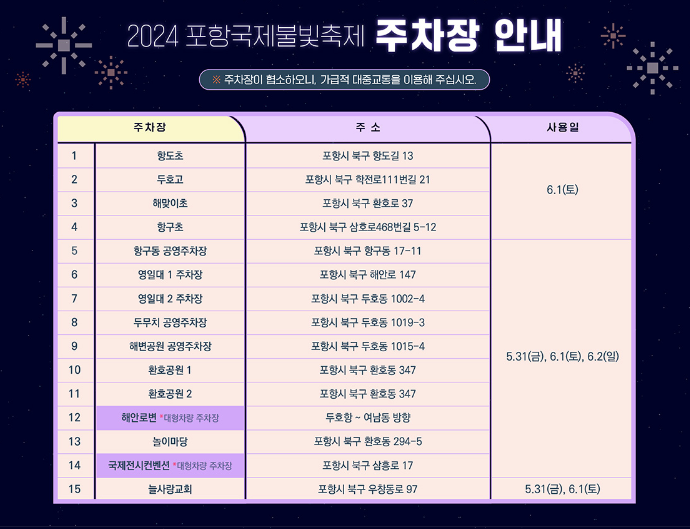 포항국제불빛축제 주차장